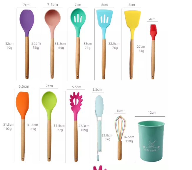 6. Delivery, Shipping နှင့် ဝန်ဆောင်မှုပေးခြင်း13pcsဆီလီကွန်မီးဖိုချောင်သုံးကိရိယာများ သတ်မှတ်